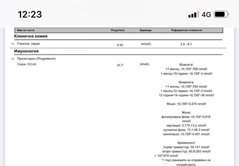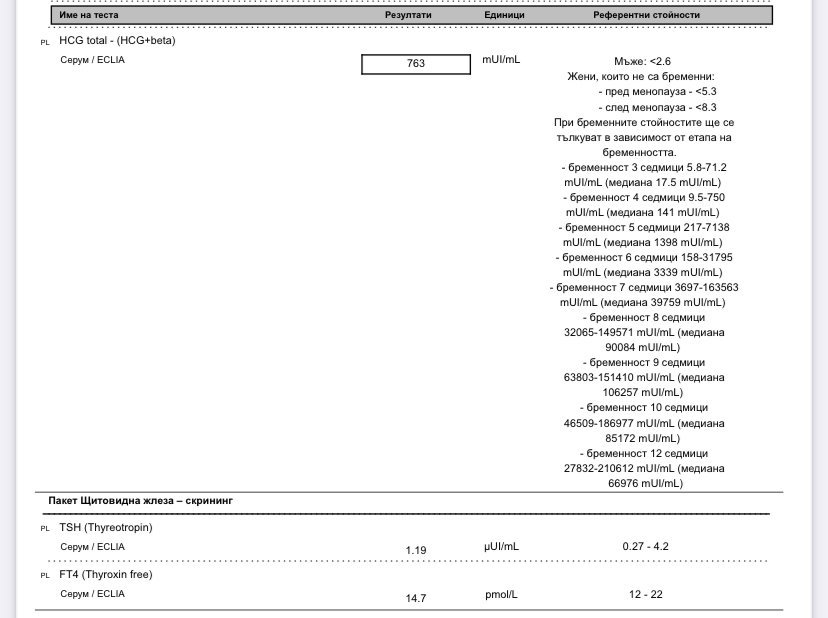 Влизам и да споделя и вторите резултати. Видно без прогестеронови инжекции и глобули съм за никъде. Днес много трудно ми взеха кръв(то всеки път е така), но досега не ми се беше случвало да е необходима повторна проба. Та, утре ще имам инфо за коагулация и ПКК.