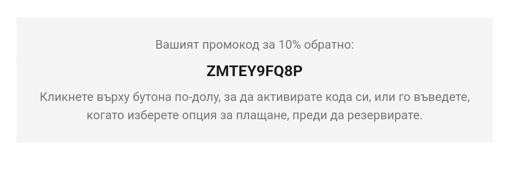 Подарявам код за Букинг, валиден до полунощ. Пишете ми лично съобщение.