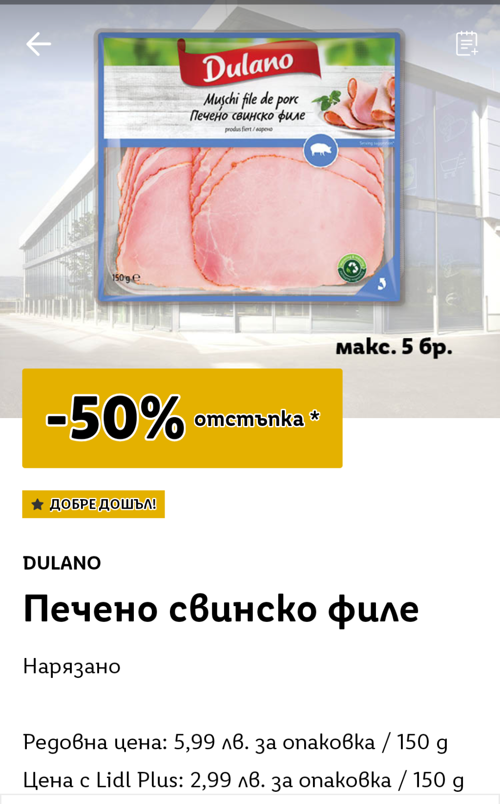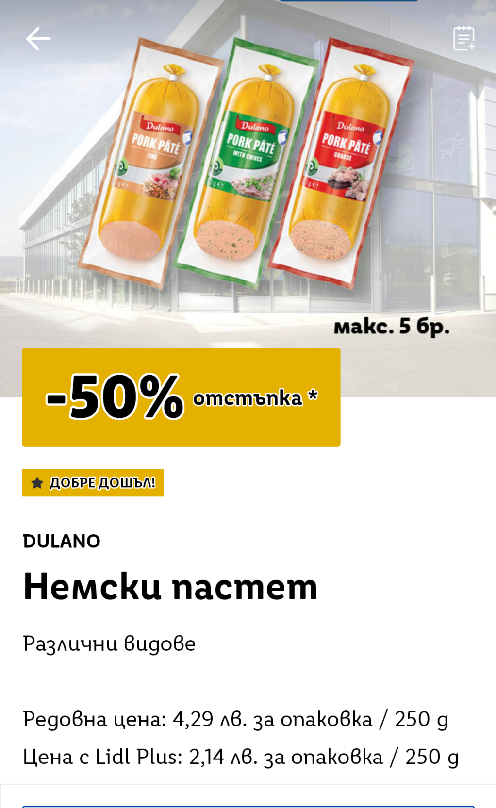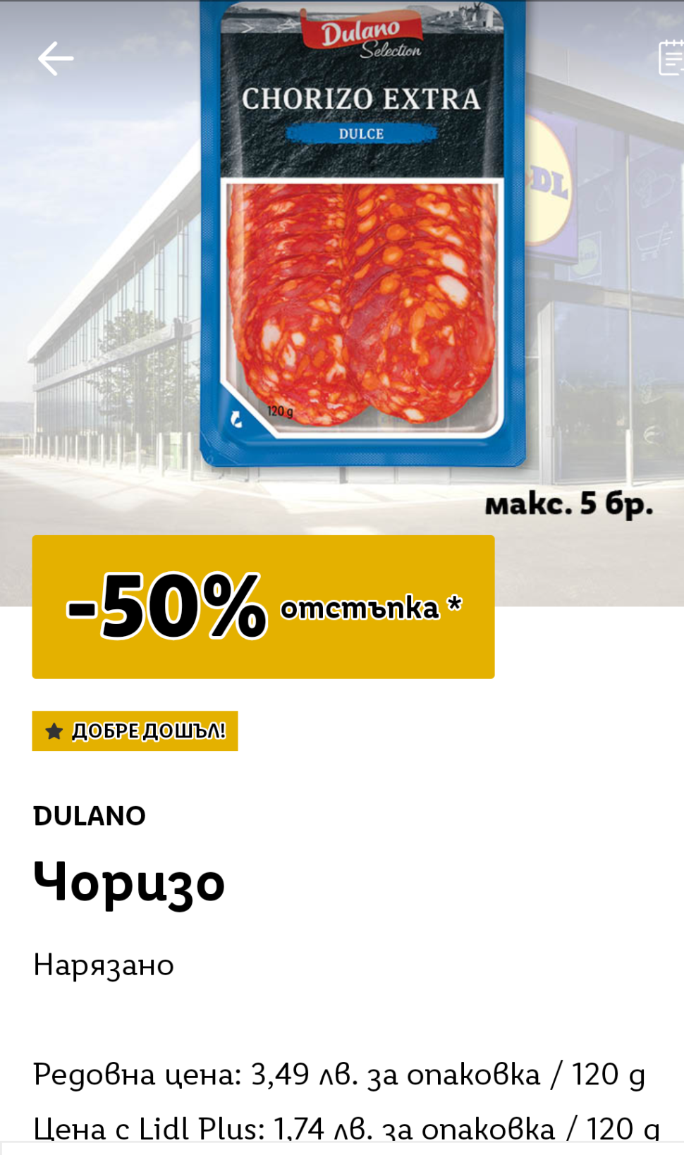 Пуканки със сол - 27% отстъпка, всички седмични, както и купони за месни продукти - 50% отстъпка (валидни само за новия Лидл в София на бул. "Райко Даскалов."
