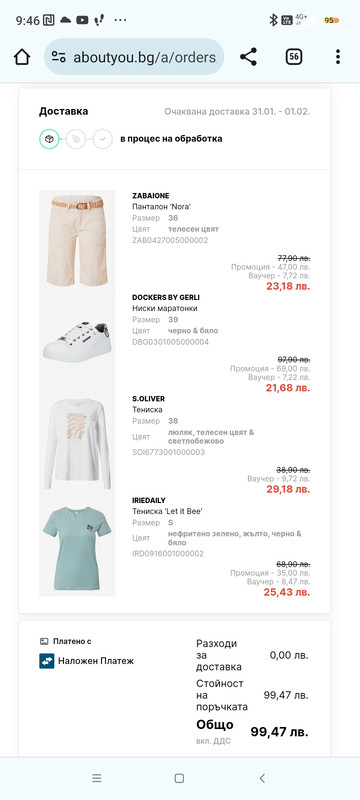 Сега видях, че бялата блуза е размер 38 (избрах S). Надявам се да не ми е много широка.