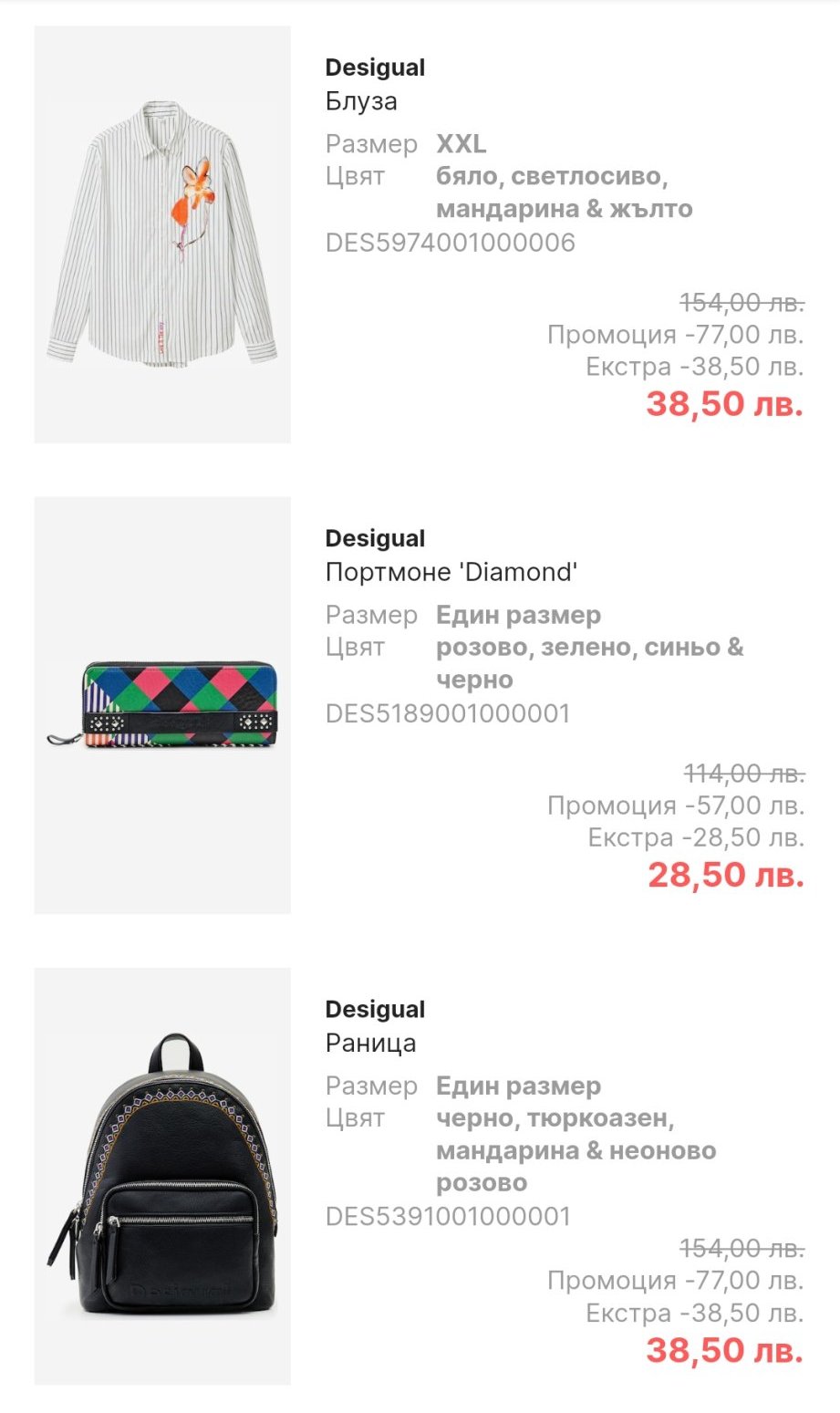 Кодовете за отстъпка могат да варират в зависимост от условията. Например, кодовете от жълтата рулетка са валидни само ако продуктът не е с допълнителна отстъпка. Има и персонализирани кодове за рождени дни или забавяния на поръчката. Важно е обаче да се отбележи, че някои марки, като Mango, не приемат кодове за вече намалени артикули. Освен това при поръчка над 100 лв можете да използвате промо кодове с намалени цени за конкретни артикули.