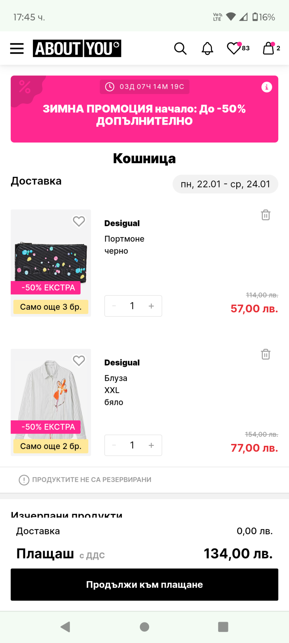 ...защо като добавя в кошницата не ми излизат вторите 50%?