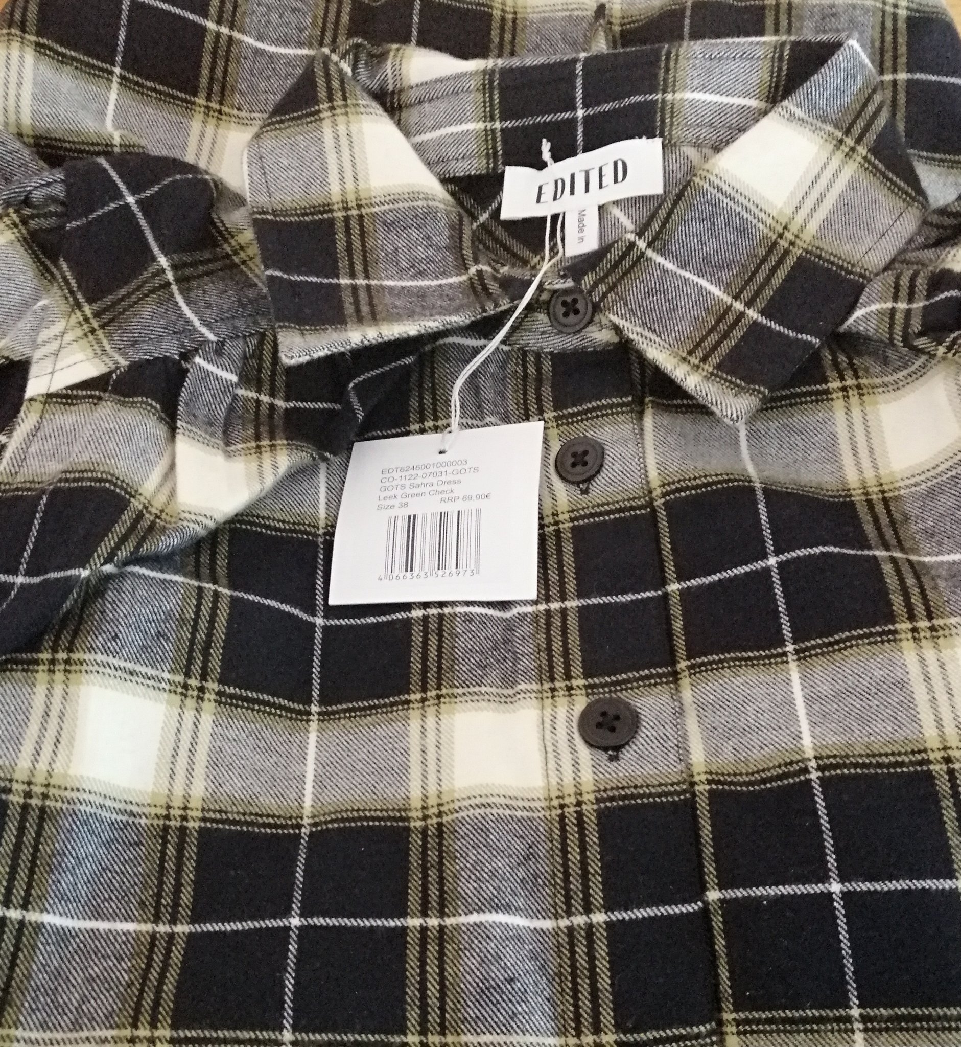 Дължина на размер М - 91см, което е тъпо, защото щеше да е чудесна ежедневна рокля за по-високи и с нормални форми, самата кройка с този тип ръкави не е за съвсем слаби