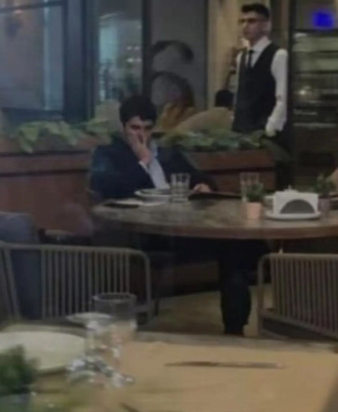 На всички снимки на масата, докато чакат, изглежда все едно му е супер скучно.