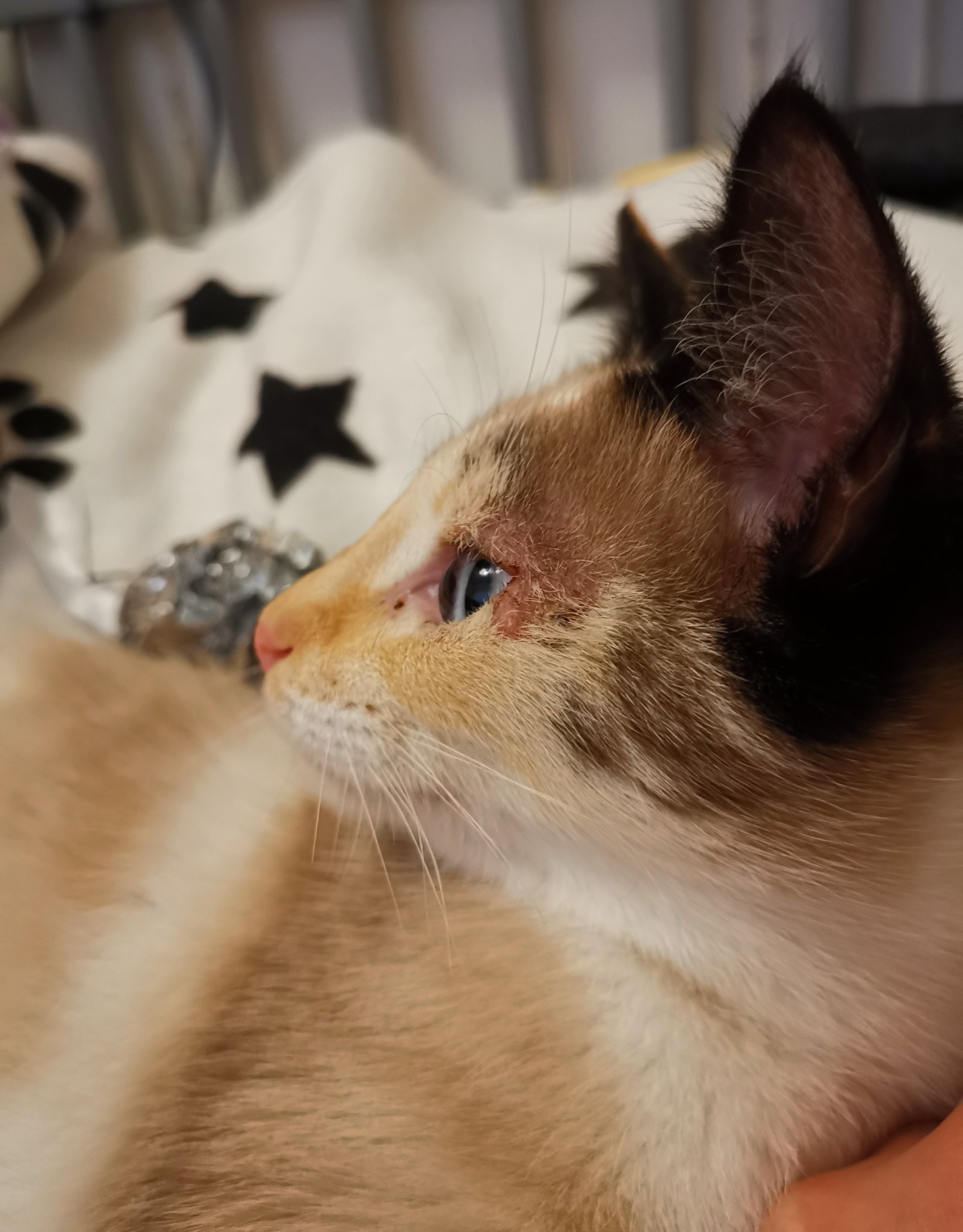 Ето откъде сме тръгнали с хайванчето след взимането му, и това, че видимо се подобрява състоянието на кожата, козината порасна обратно и раздразнението преминава осезателно, ми говори, че сме на прав път.