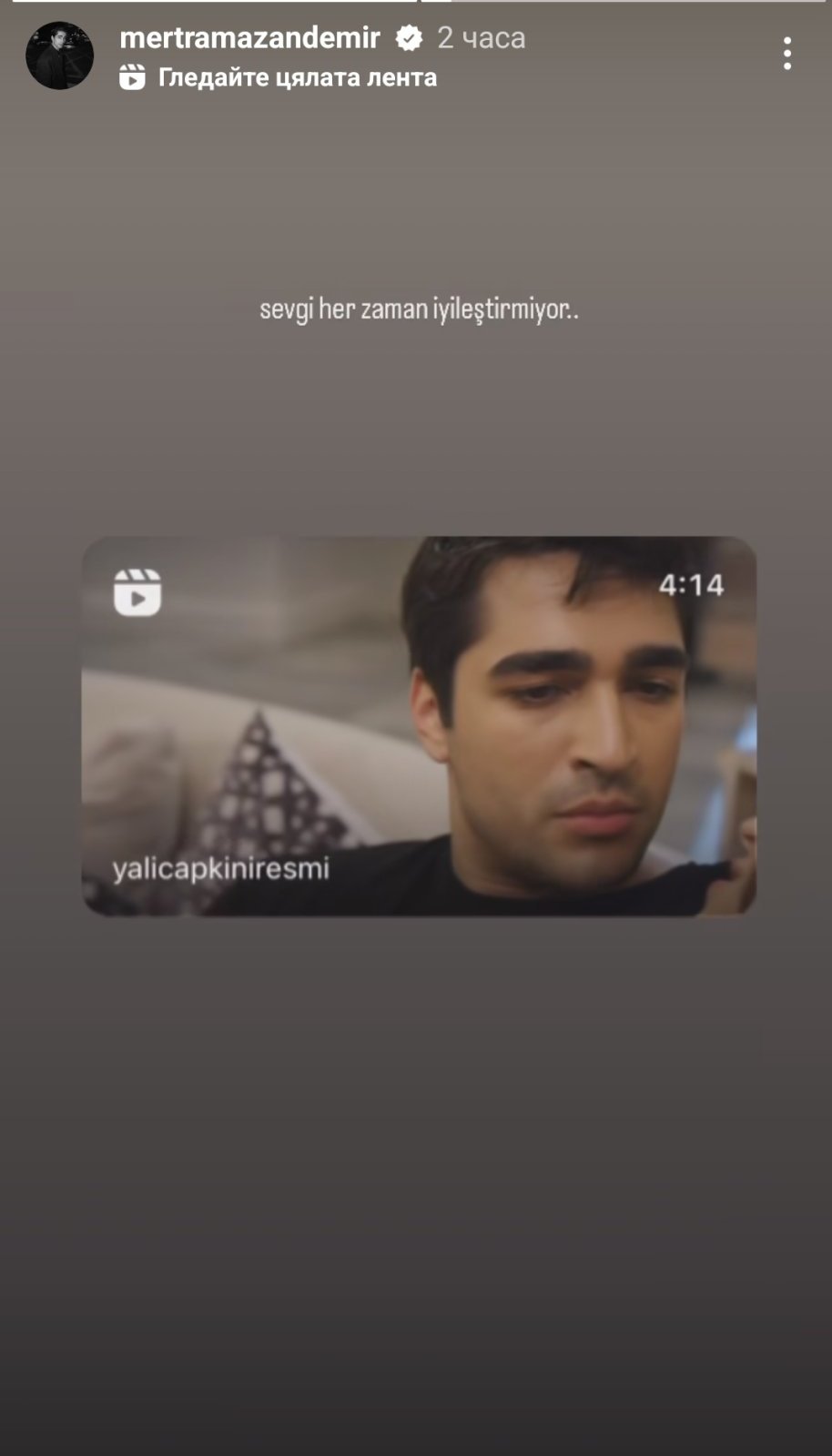 Яко пр щом Мерт чак си качи на стори новата мадама с последната им сцена. Какво вика любовта не винаги лекувала,тъпчо