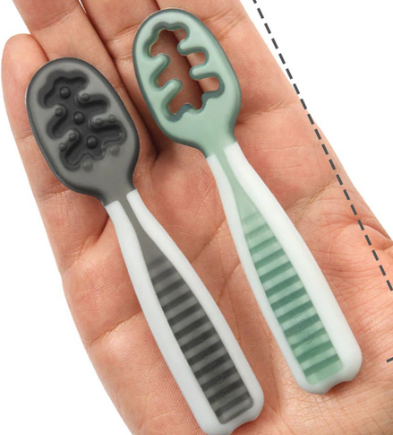 А ако аз насочвам, си дърпа ръцете и се сърди. Дано започне в някакъв момент и сама... Така или иначе сега трудно яде твърда храна. Чакам уж нови зъби да се появят.