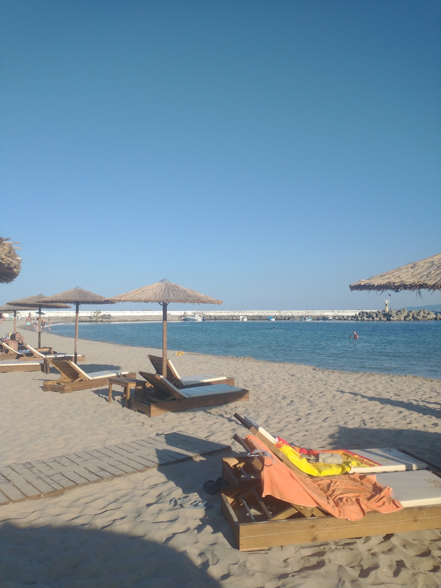 Пристигнахме. Първи впечатления. Струва ми се,че има доста хора, поне съдейки по колите. Но беше неделя, да видим днес. Ние сме на ММЦ в хотел Сърф.Съотношение цена/качество добро. За нас е важно и да можем да влизаме / излизаме с колата по всяко време., тъй като съм инвалид. А и да сме извън суматохата , на спокойствие. Дотук 6 точки. На плаж ще ходим на Перла при резиденцията. Минахме. Първи два реда , хубавите шезлонги, сламените чадъри -40лв Назад по 30. Коктейл пих -15. Нормална цена.