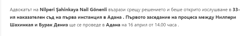 Нилпери май оспорва решението на съда и завежда ново дело срешу Бурак ( това успях да разбера с преводача)