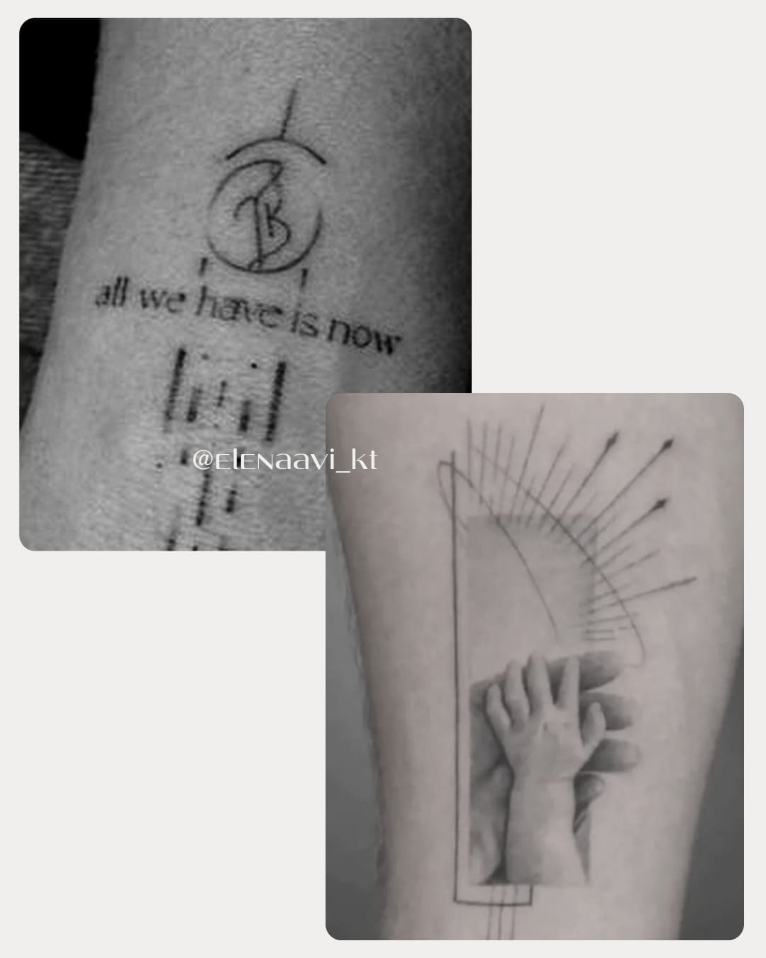 На дясната си ръка има роза и инициалите KBT (Kıvanç Başak Tatlıtuğ) с фразата "Всичко, което имаме, е сега“.