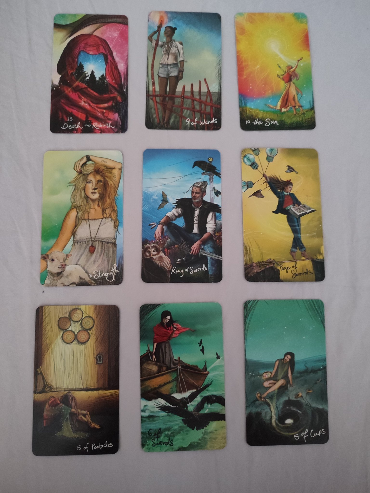 Пускам и едни нови карти. Три реда, по един за работа, любов и вдъхновението ми(книгата дето пиша) какво ще очаква до края на месеца. В работата с тая смърт и слънце май ще е на хубаво.