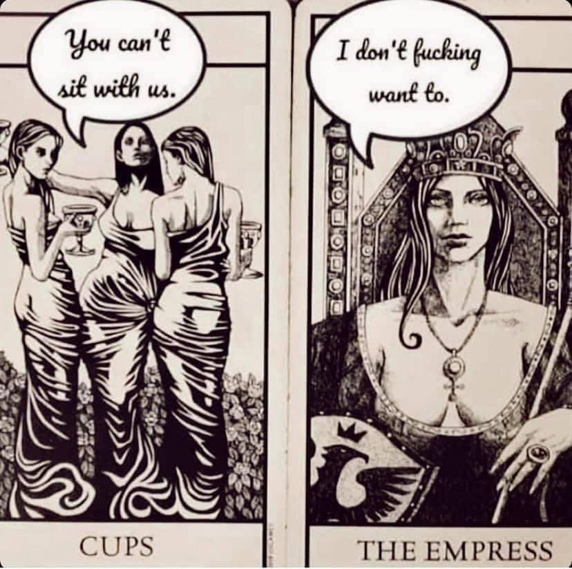 Тя от много време е на тая позиция и е нормално да прояви апатията на четворка чаши. Силата и нея си я обяснявам като това, че само тя работи и полага много усилия.