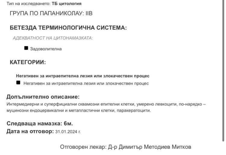 Прочетох доста информация за цитонамазките, направени в болница Надежда в последните години. Получих резултат IIB група без препоръки и без видими проблеми, та се чудя защо всъщност е IIB. И подобни резултати ми излизат единствено при този патолог - в други лаборатории са ми излизали резулати без проблем. Ще съм благодарна за мнения: