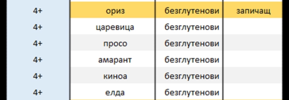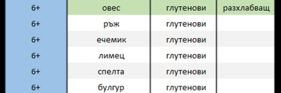От безглутеновите съм въвела ориз, просо, царевица и елда. Другите безглутенови ще ги яде в менютата от детската кухня., живот и здраве. 😀