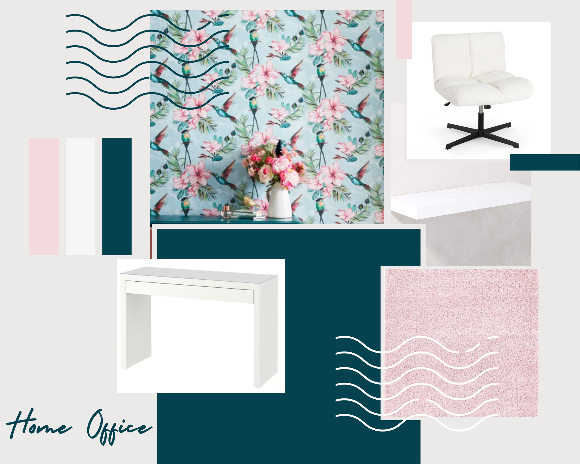 Къщата ще стане супер, всичко съм измислила и всяка ниша съм уплътнила, но кога ще видя изпълнение, не се знае. Съседите само ахкат по решенията ми и черпят идеи, защото живеем в еднакъв тип къщи. Малки са, само 75 квадрата с нисък таван. Просто на мен ми се отдава да намествам нещата. Малко ни беше кофти от 100+ квадрата висок таван да се преместим в тази, но се свиква. Най-новият ми проект е новият ми офис в килера като ще завземам и просранството над стълбите. Дори в момента пиша от там. Но лятото ще натискам баш майстора да разбиваме и наместваме. Само тапета поръчах, защото беше на намаление. Прилагам проекта, а изпълнението ще показвам после. Мокетът ще е розов. Синьото ще е цокъл на нивото под работните плотове, а те и рафтовете ще са в бяло. Само столът не съм сигурна дали ще е бял или ще му ходи повече нещо в жълто като гушките на пилетата.