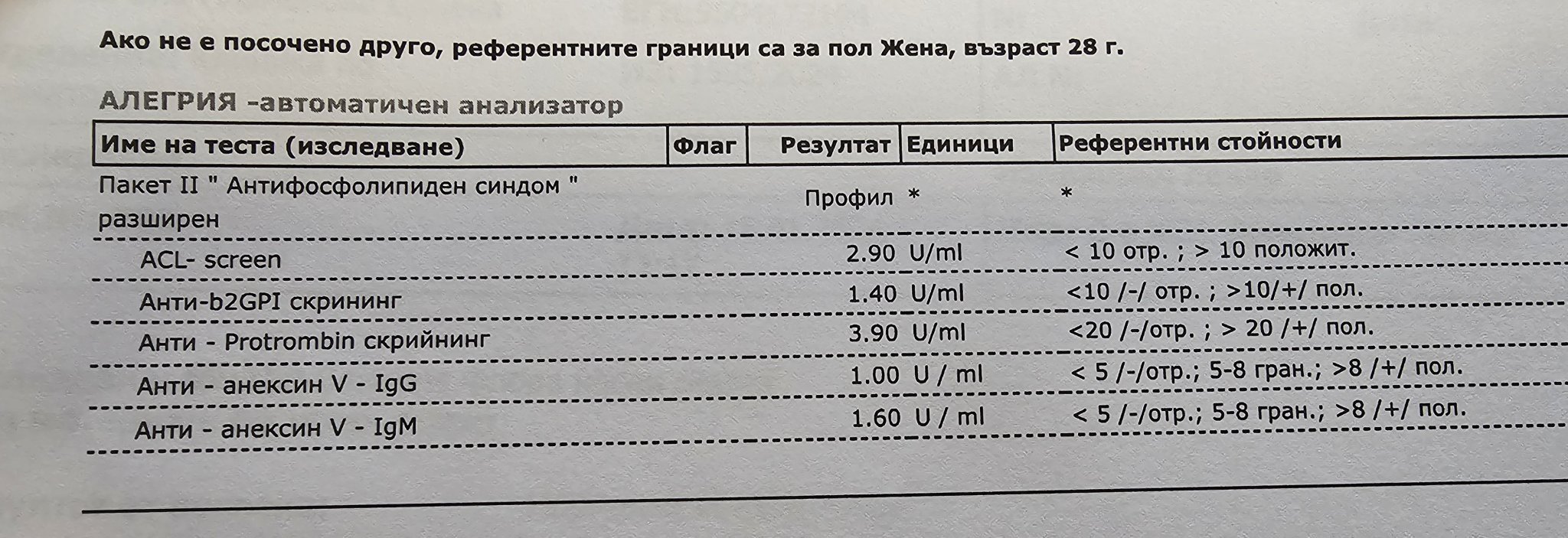 Ето и моя разширен пакет за антифосфолипидните... поне всичко е в норма от това, което виждам...