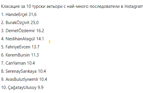 Чачо е в топ 10 на клсацията с най-много последователи в Турция