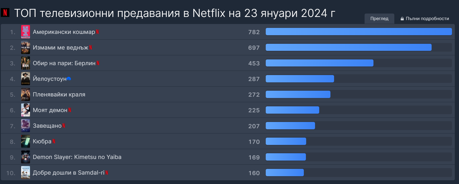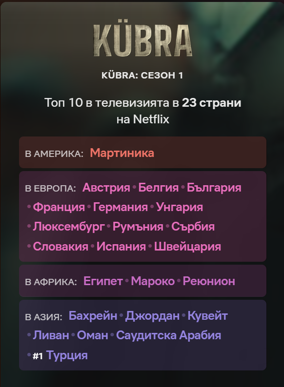 В седмичната класация на Нетфликс при неанглоезичните сериали по брой гледания,