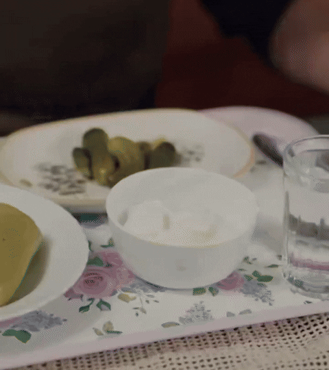 Усмихва се и похапва сладко и бисквитка и зелен домат и пържени филийики . Това зелен домат в кисело мляко е ужасно не бих го вкусила . Аз си помислих, че е пълнена чушка