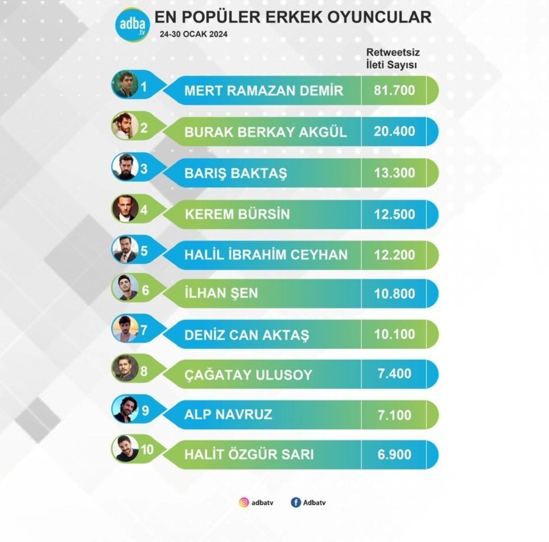 Според данни на Adba най-популярните мъже актьори за седмицата са: