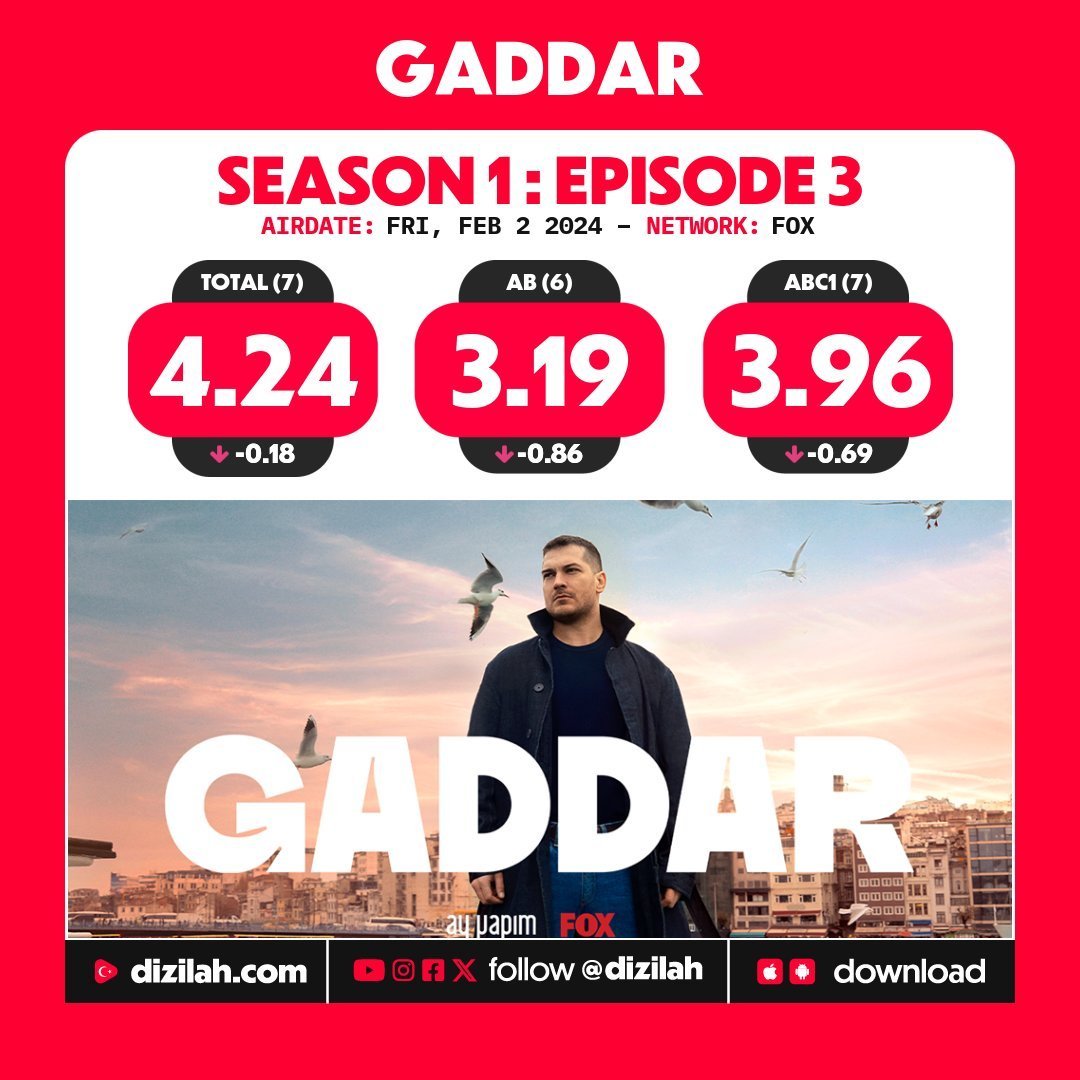 Рейта на Гаддар за епизод 3 е в началната позиция. Не се отчайваме и няма да го мислим толкоз.  Убедена съм че ще вдигнем интереса и цифрите само търпение.