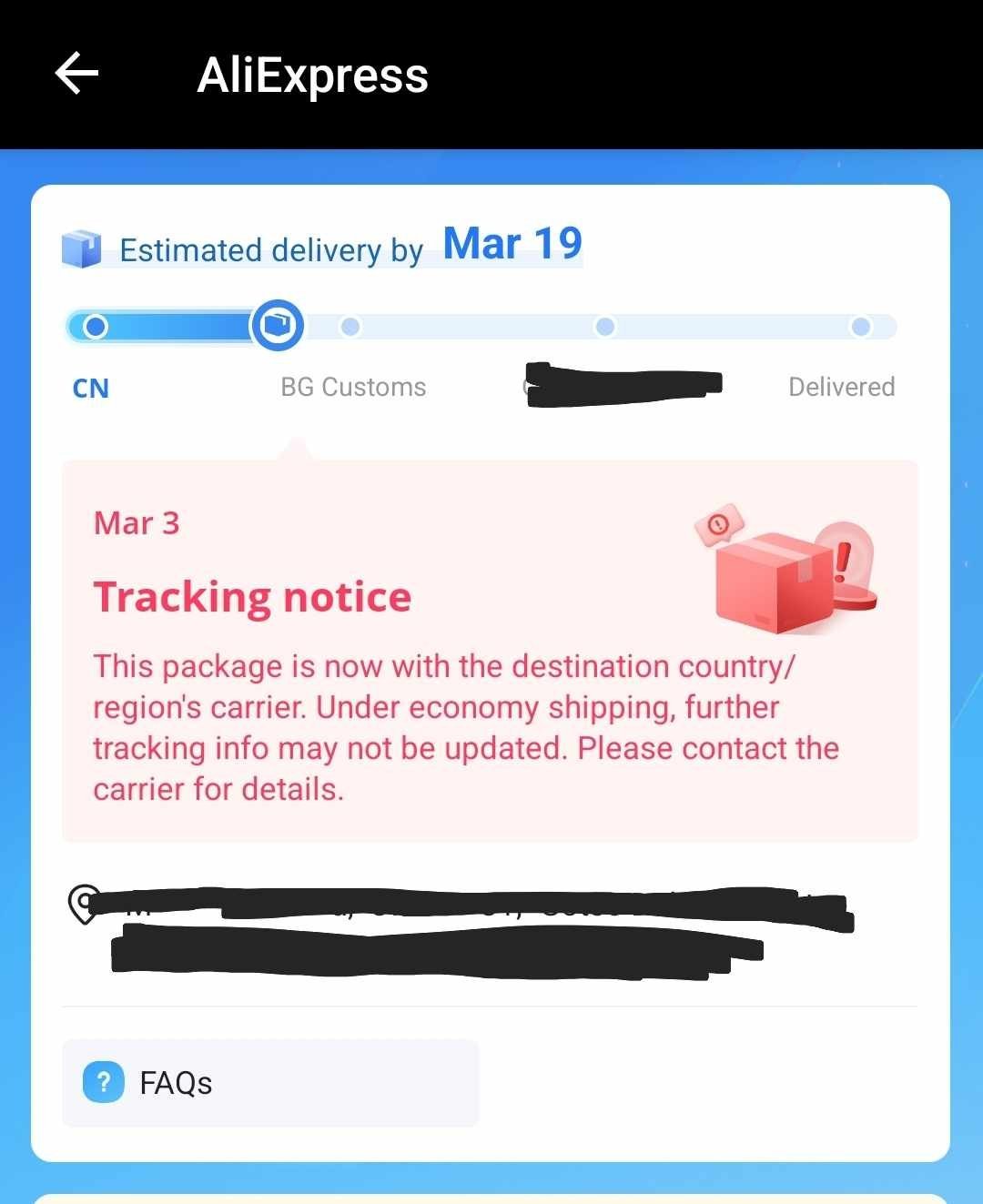 Чаках, чаках, чаках търпеливо едни фрези от али, но вече се чудя ще дойдат ли въобще. Поръчах ги на 18.01. Този Tracking notice стои така от много време и постоянно се променя датата, вярно, че estimated delivery-то го дават на 19-ти март, но и на другите неща от поръчката беше така, а пък дойдоха преди доста време.