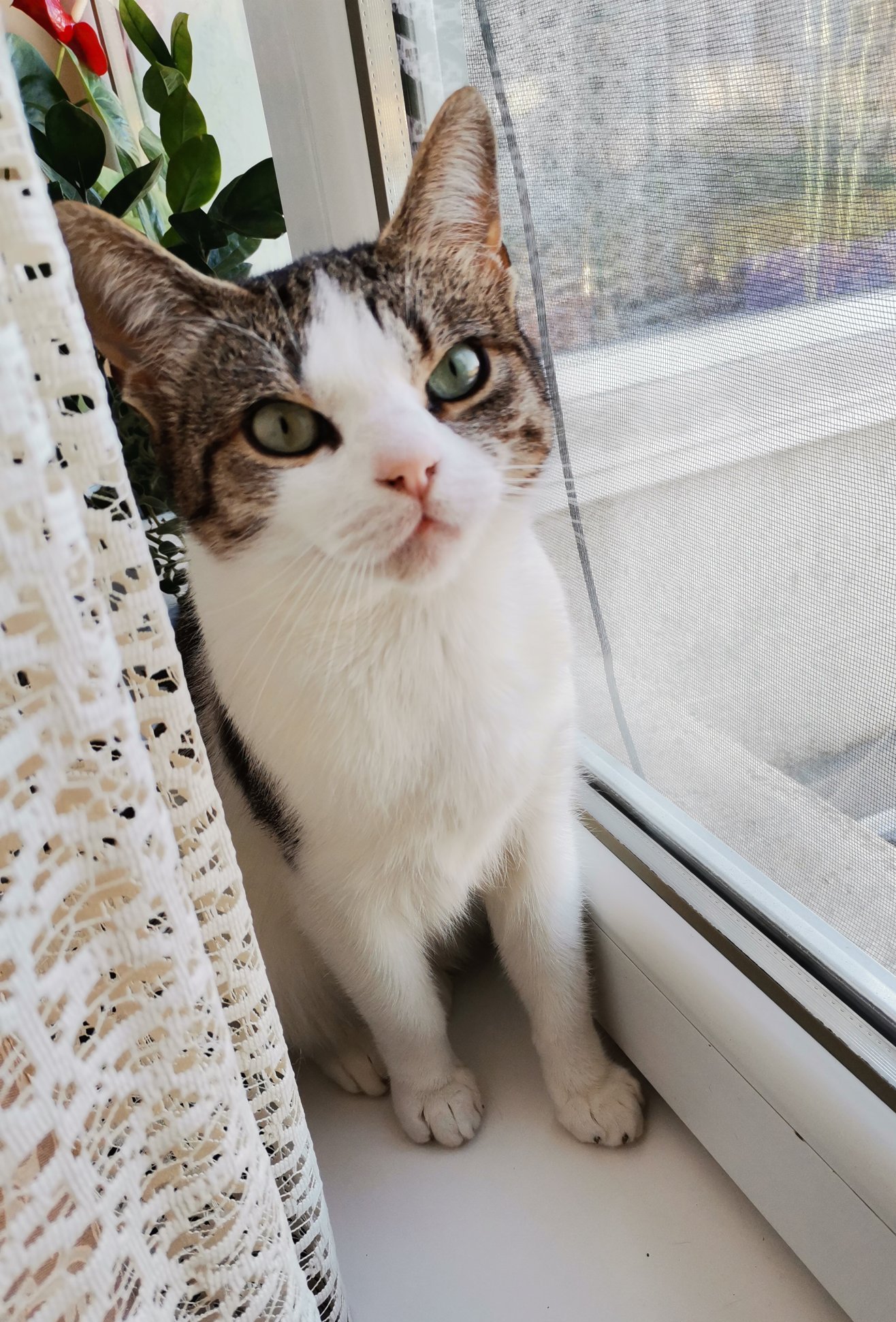 Това пък е Алиса. Много обича да спи милата и да стои на прозореца да гледа. Не мога да спя без нея. Когато огладнее идва мяука ми и ме закарва при храната демек да и дам. Като иска да излиза мяука да и отворя, а като се прибира скача на бравата и влиза. Пък ако никой не я отрази усеща в коя стая съм и ми съдира комарника докато не я пусна.