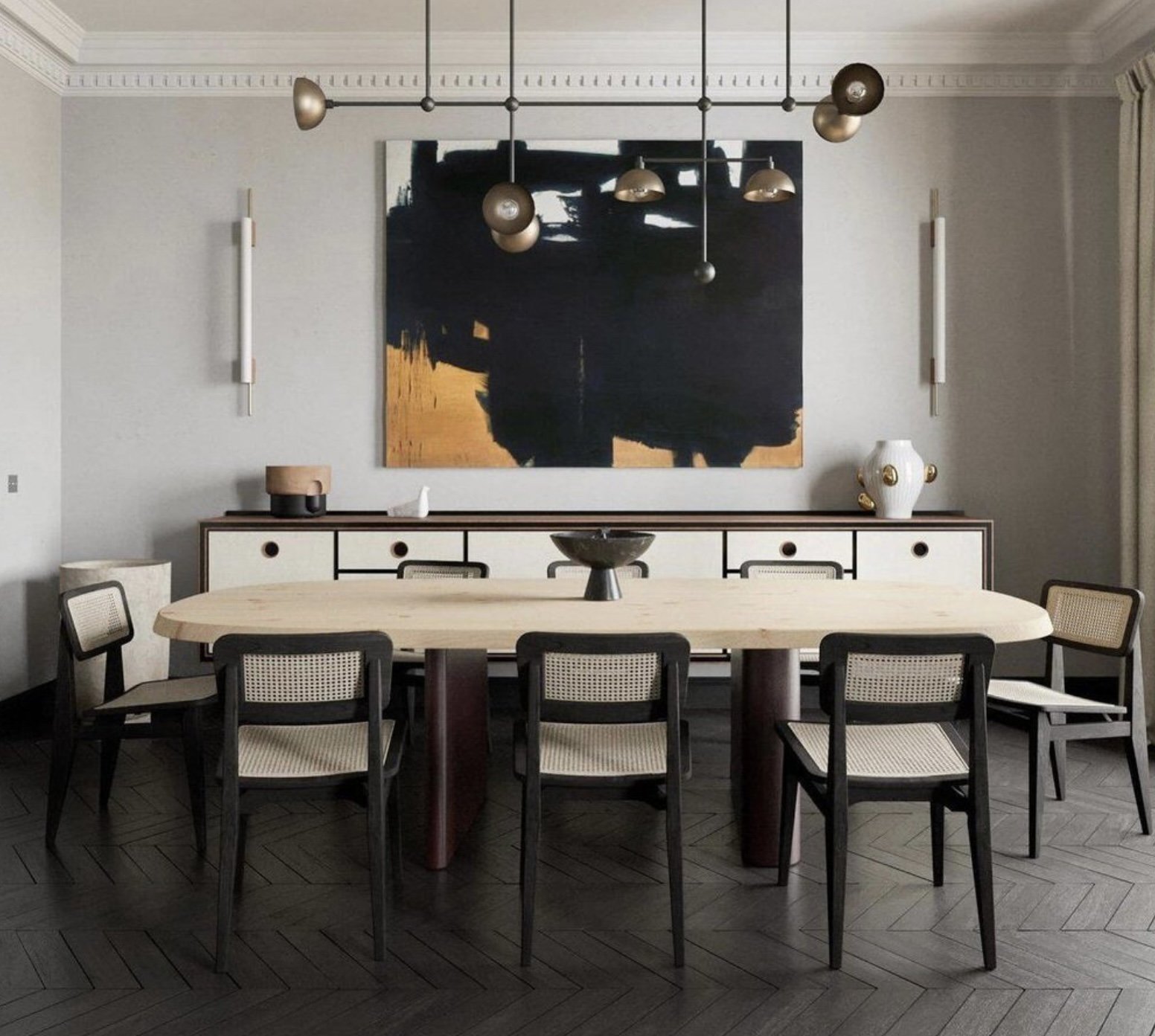 Зависи от цялостната концепция, но бял аплик на бяла стена не е нещо необичайно. Аз има бели аплици на бели стени, но не в трапезарията. Иначе ето няколко картинки за онагледяване точно в трапезария: