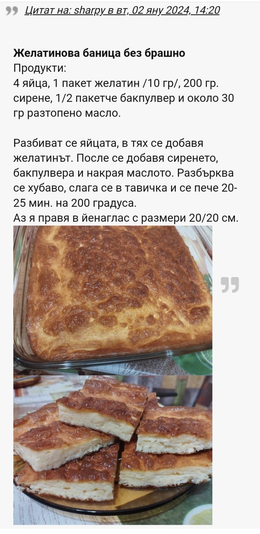 Може да опитам да направя и баницата, но трябва да видя от къде да купя желатин на прах