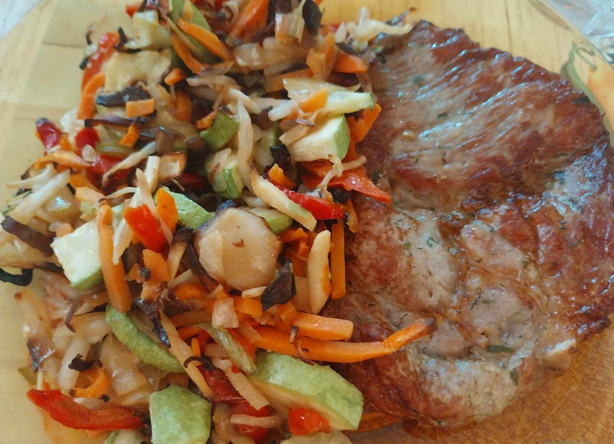 И накрая да покажа днешната кльопачка - врат със зеленчуци. Извън кадър купа салата айсберг и черита.