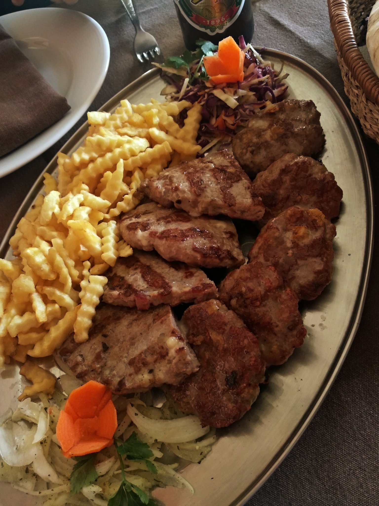 Правих пилешко с прясно зеле като си прибрахме, та днес това вечеряхме. На обяд бяхме на много хубави кюфтаци в едно балканско капанче.