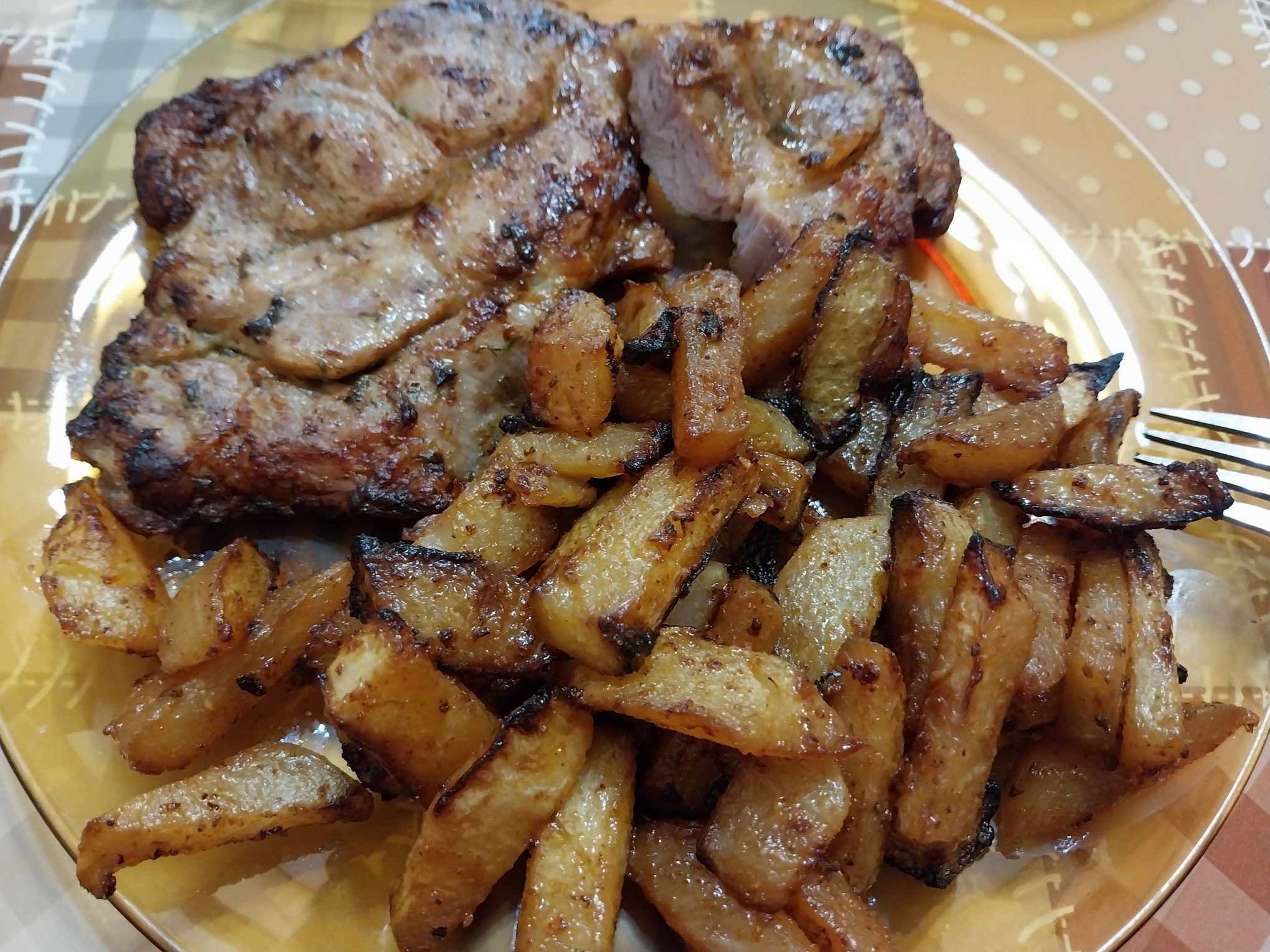 Никога не си поръчвам ребра в заведение, защото като започна да ги глозгам, се омазвам до ушите. Зеленчукът беше броколи и обичайната салатка айсберг/черита/краставички.