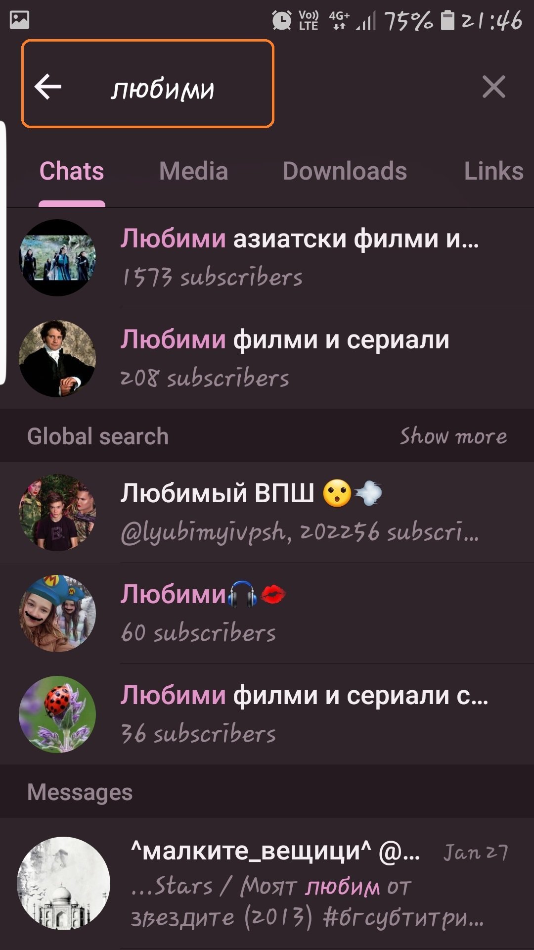 в телеграмската търсачка ако напишеш само - любими- а не цялото заглавие излизат и двете групи, а най-отдолу се показва и "моят любим от звездите" Grinning