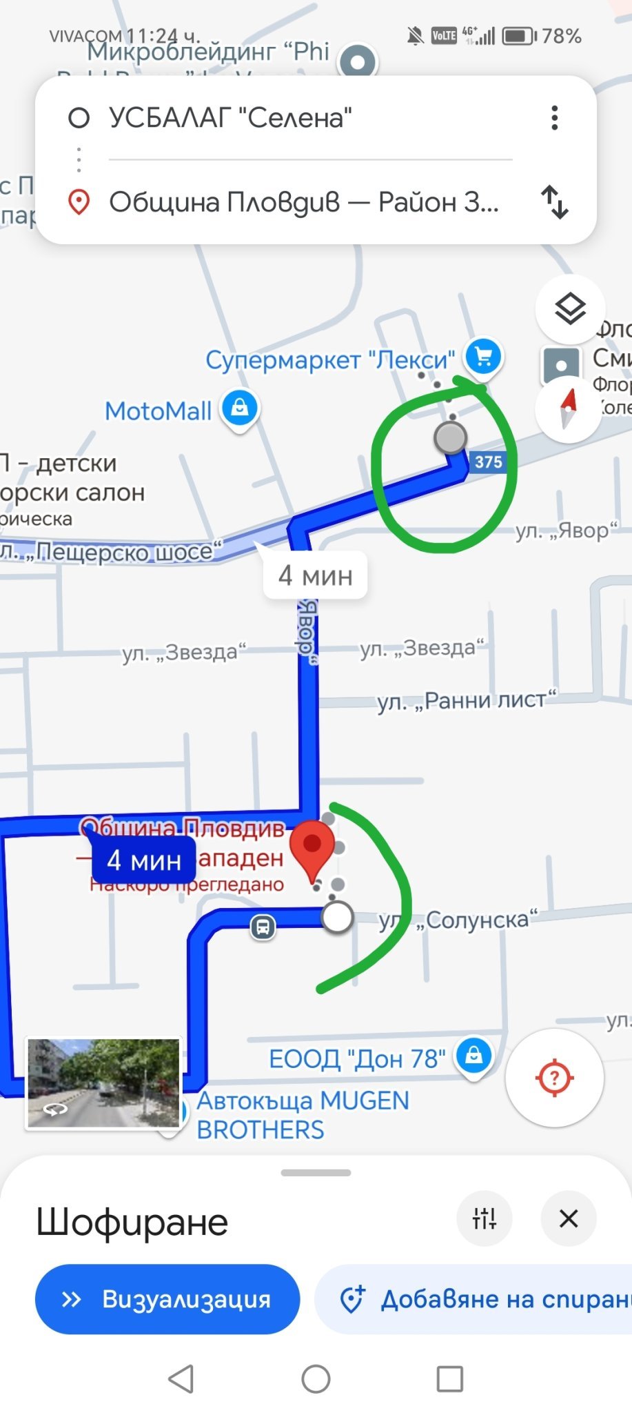 На снимката - горе е болница Селена, а долу е община Запад, от където мъжа ми взе акта за раждане на детето. Да добавя още нещо - тъй като сме от Сливен, се обадих предният ден, да попитам дали акта за раждане е готов, както и двете епикризите. Защото 200км са си 200км и само да отиде и да се върне, и нищо да не  е готово..