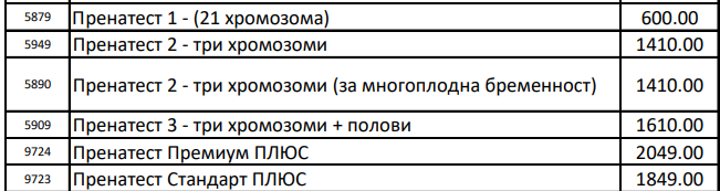 И аз гледах различни пренатестове. Най-евтиният, който намрам е следния: