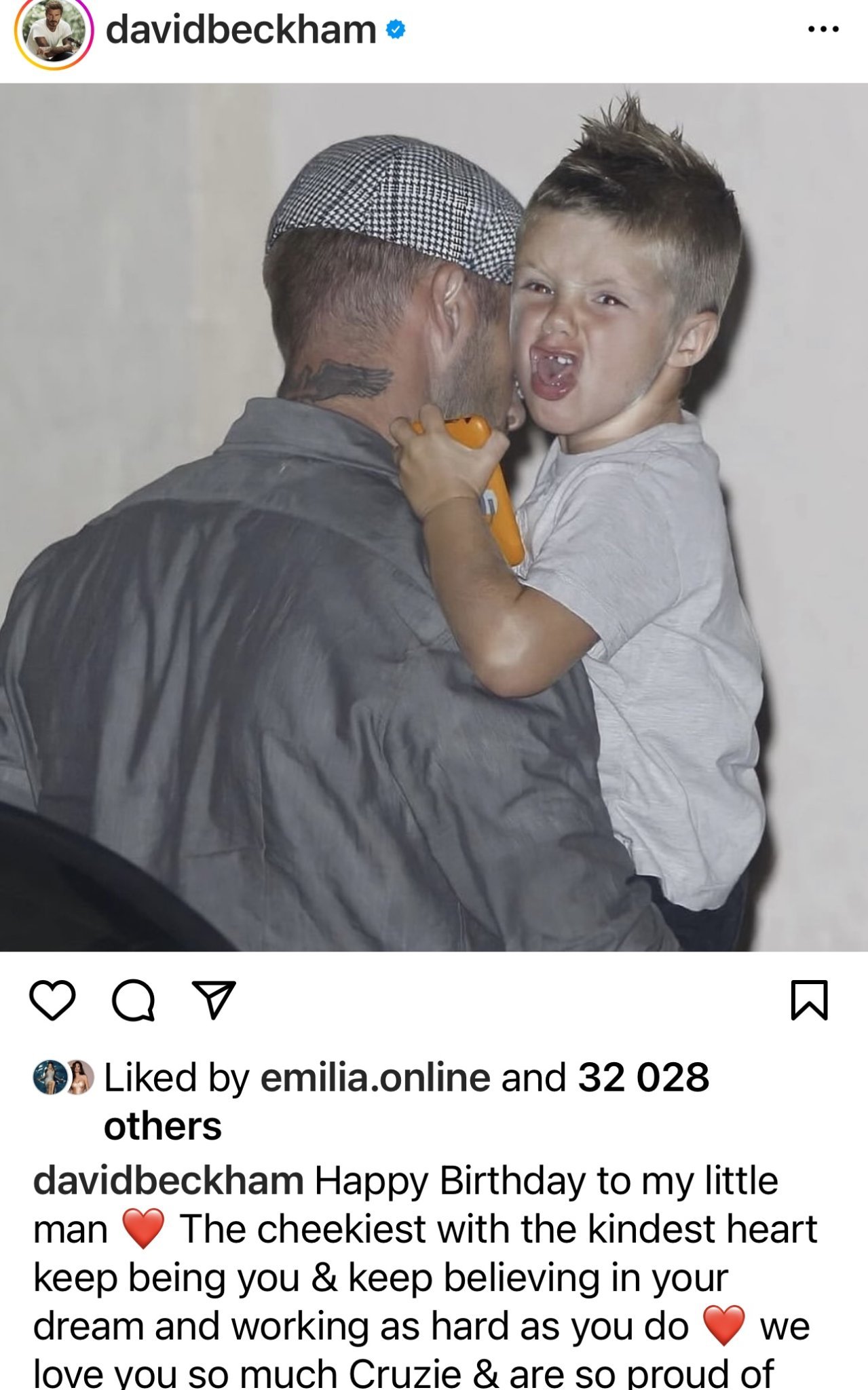 Круз Бекъм рожденник, сладка снимка с татко му: