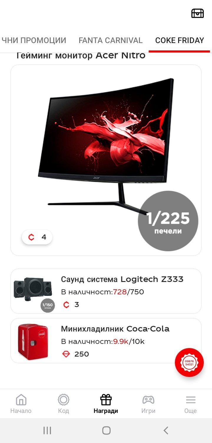 Кока колата се отвори при мен само веднъж за има-няма две минути, това са наградите