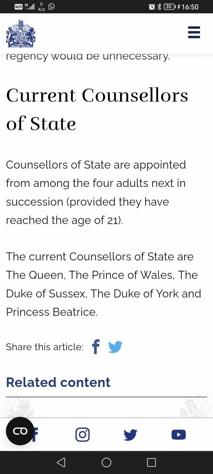 Не знам списание Пийпъл какво е писало, но написаното на официалния сайт на Кралското семейство, за това кои са държавни съветници е друго.