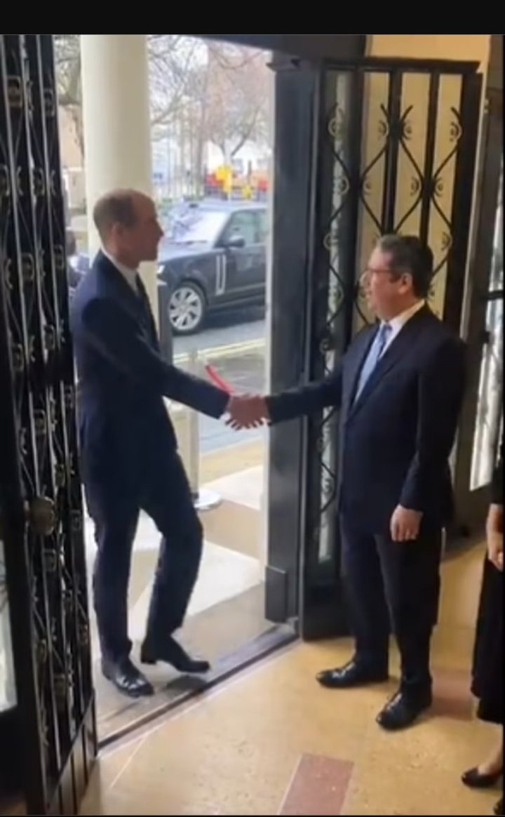 Принцът на Уелс получи букет цветя за съпругата си Катрин, принцесата на Уелс, по време на посещение в синагогата Western Marble Arch днес: