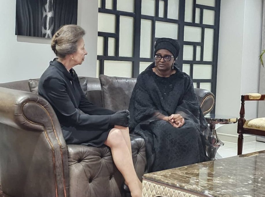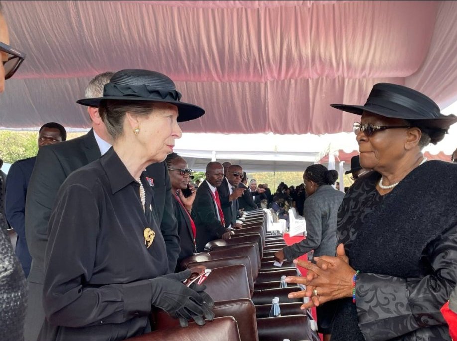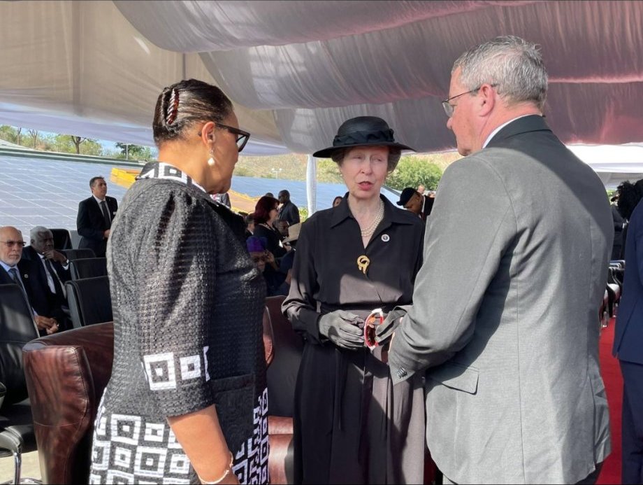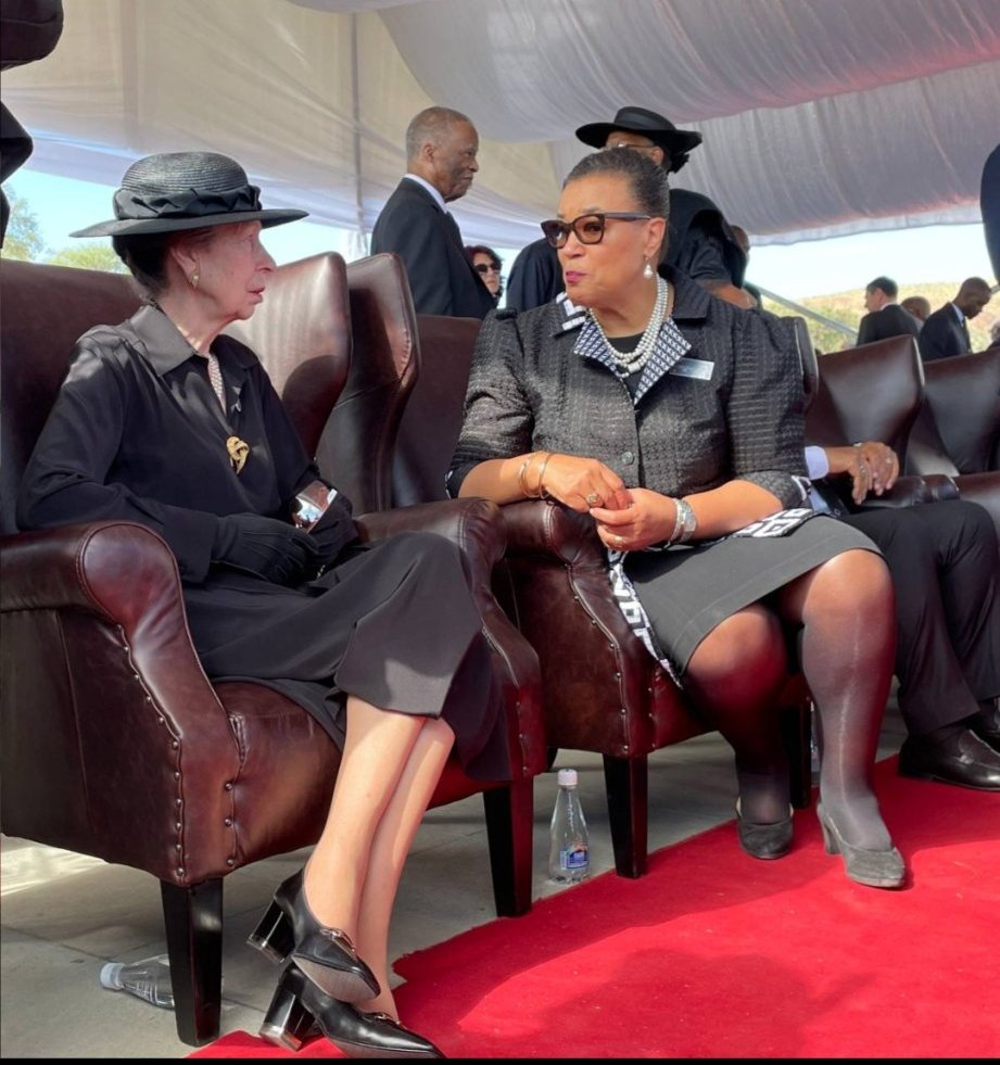Принцеса Ан посети бившата първа дама Моника Гейнгоб в дома й в Уиндхук в събота вечерта, след държавната възпоменателна служба за президента Хаге Гейнгоб.