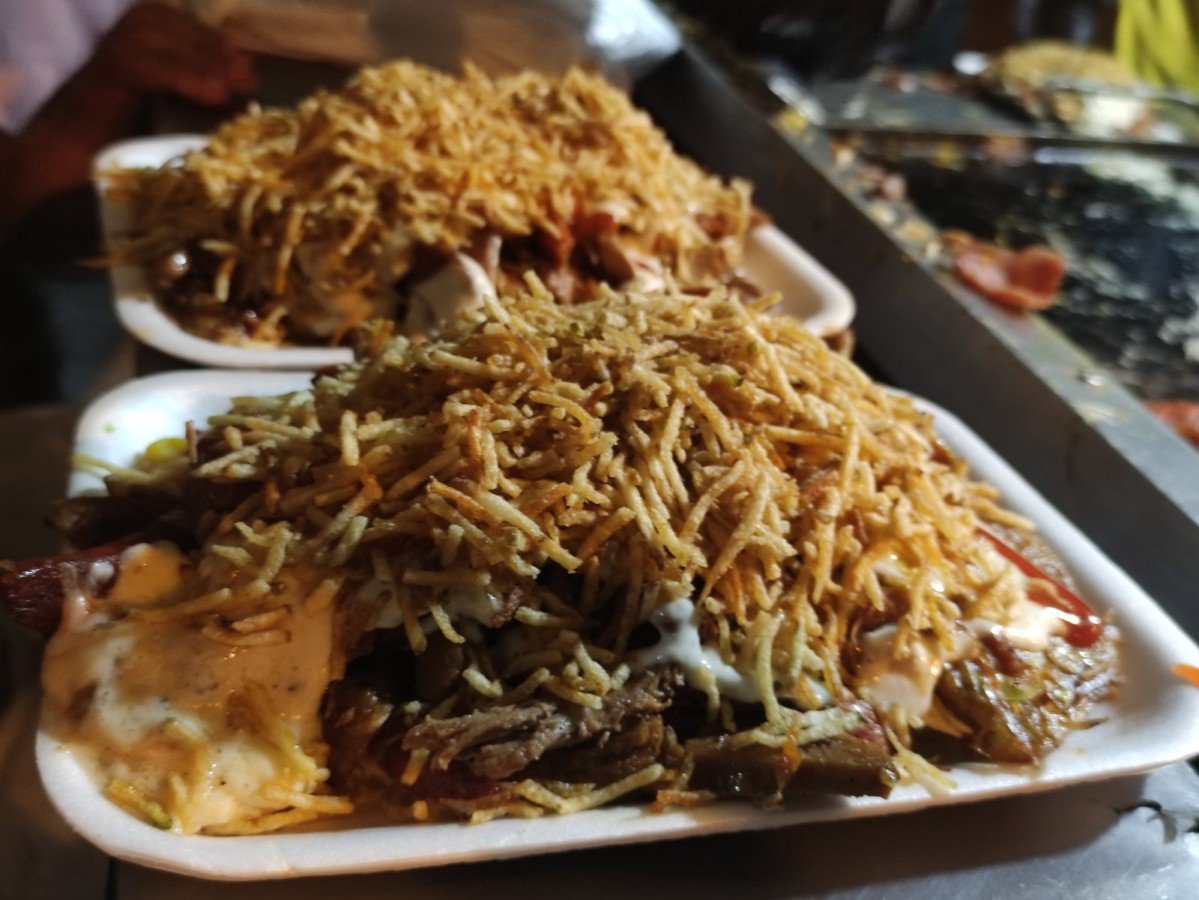 Това на пръчките е режимно с изключение на тапите-картофи, то и другото, с изключение на посипката от някакво пържено фиде, става. Месо и някакво разтопено сирене е. Ама с тези не можеш нито да ги питаш, нито да се разбереш. Дума английски не знаят. Навсякъде.