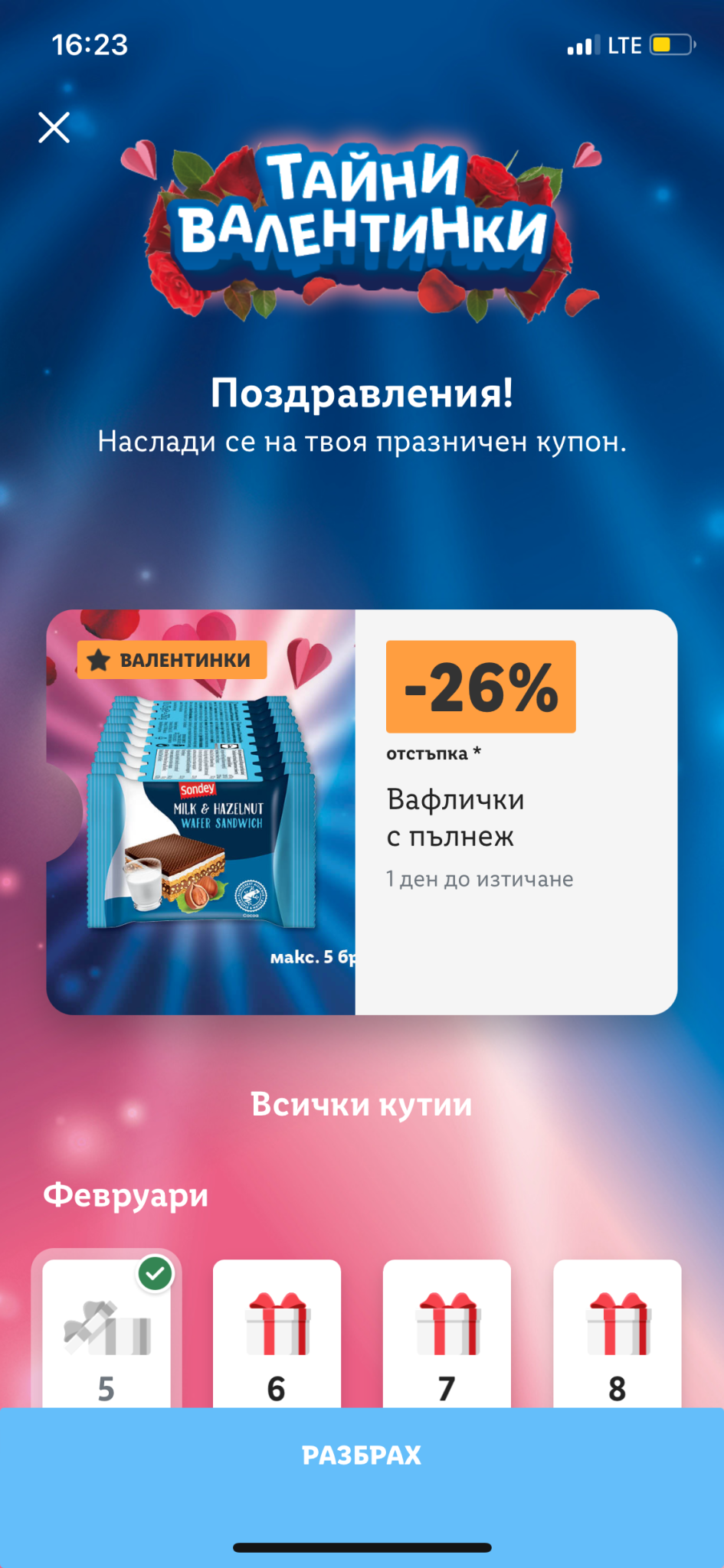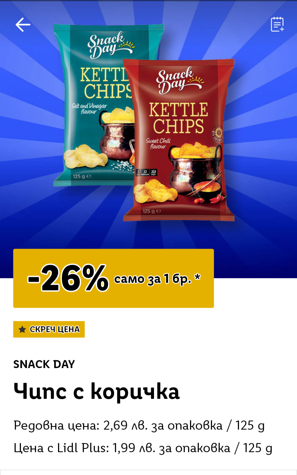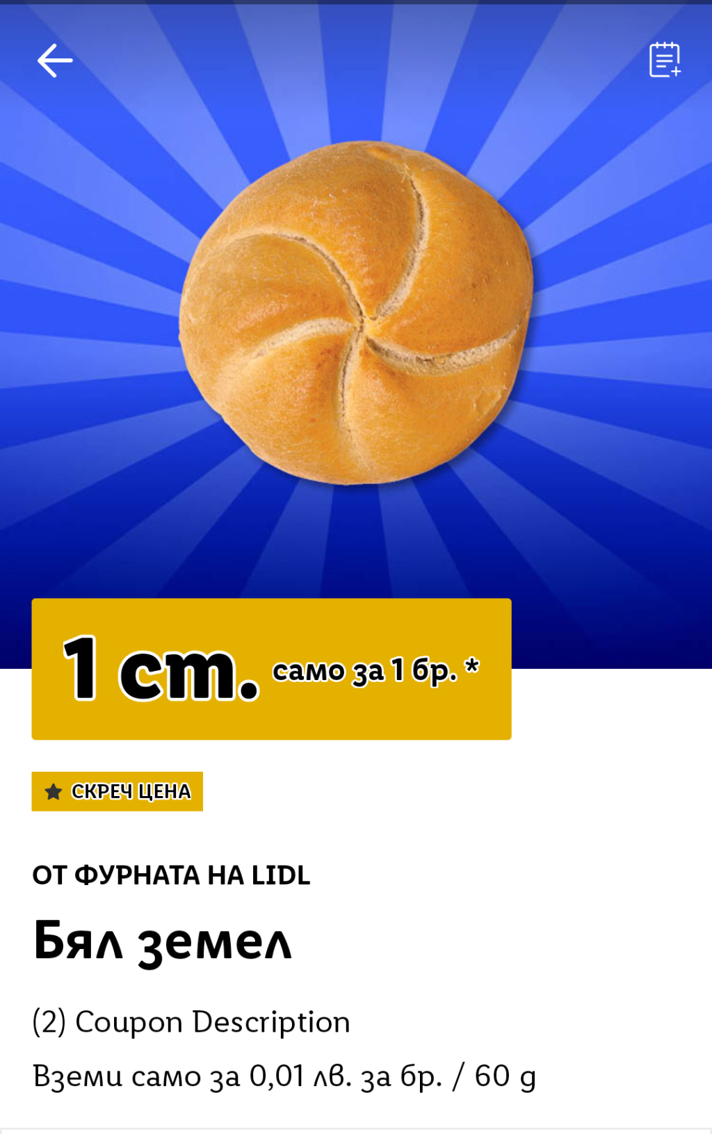 Купоните за: Бял земел - за 1 ст., мини шоколадчета 3+1 подарък и чипс с коричка са подарени.