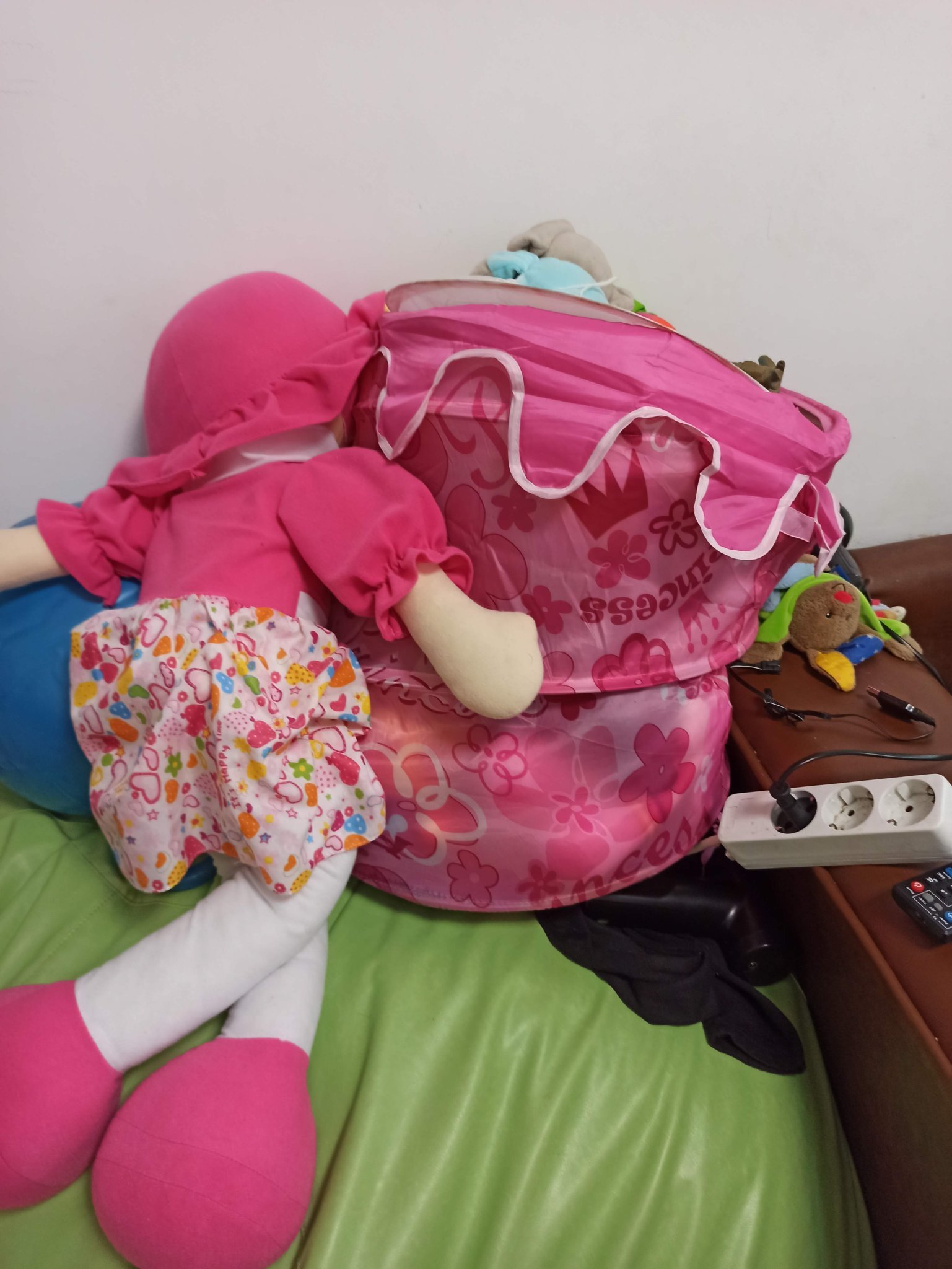 Моите са в такива кошове. Имам и в детската.   Стой на земята и тя си вади играчките, в редки случай даже се сеща и да прибере някоя. Сега е вдигнат заради прахосмукачката. Не са идеалното решение, но като нямам място за друго ще са си така. В детската има и висок шкаф с рафтове там са подредени книги, пъзели, Лего, настолни игри и други подобни.