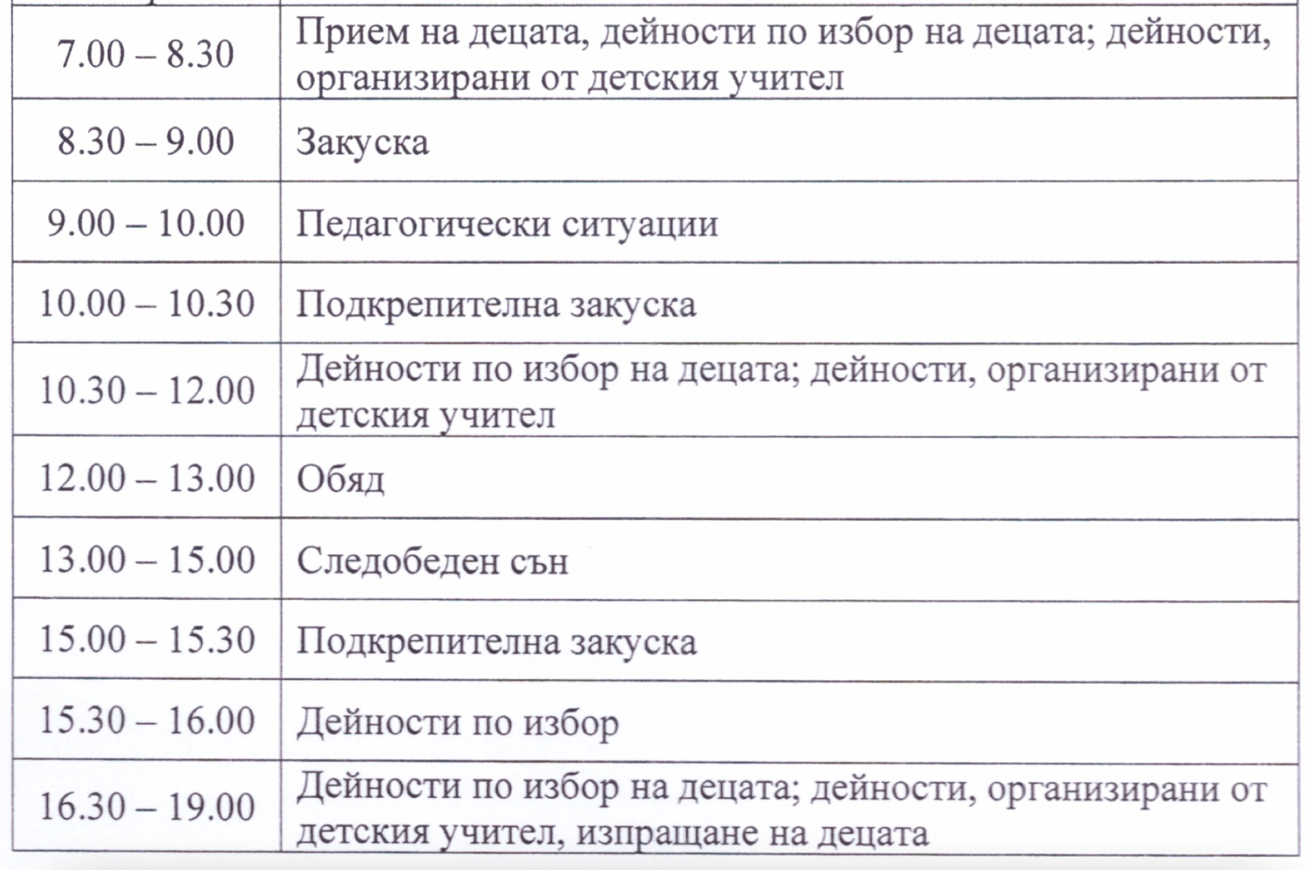 В яслата където искам да запиша Пламена са с такъв режим,като от 8:30 до 8:45 имат сутришна гимнастика. Иначе ги изкарват на вън,но зимата пропускат.