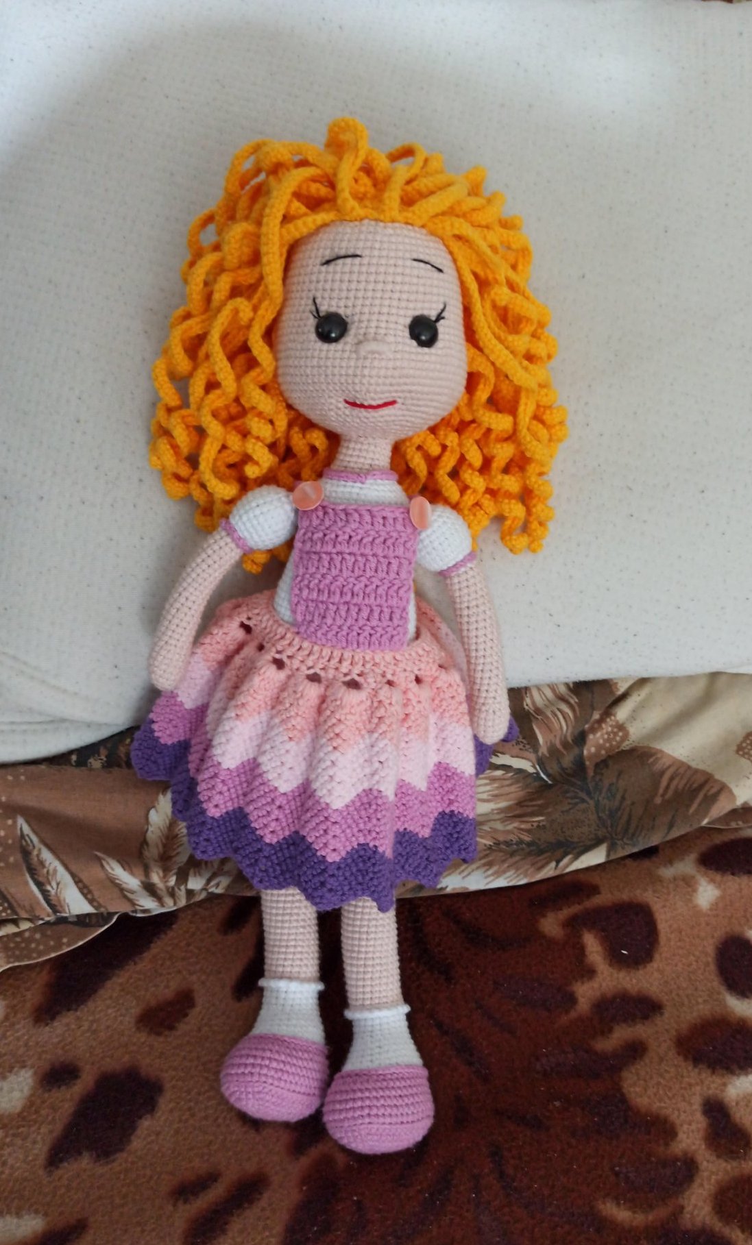 Да се похваля, че вече я завърших. Започната е когато бях майчински с каката. Всъщност тя си беше изплетена, но трябваше да се зашие и имаше малко да се довърши от косата. Е дойде и времето.