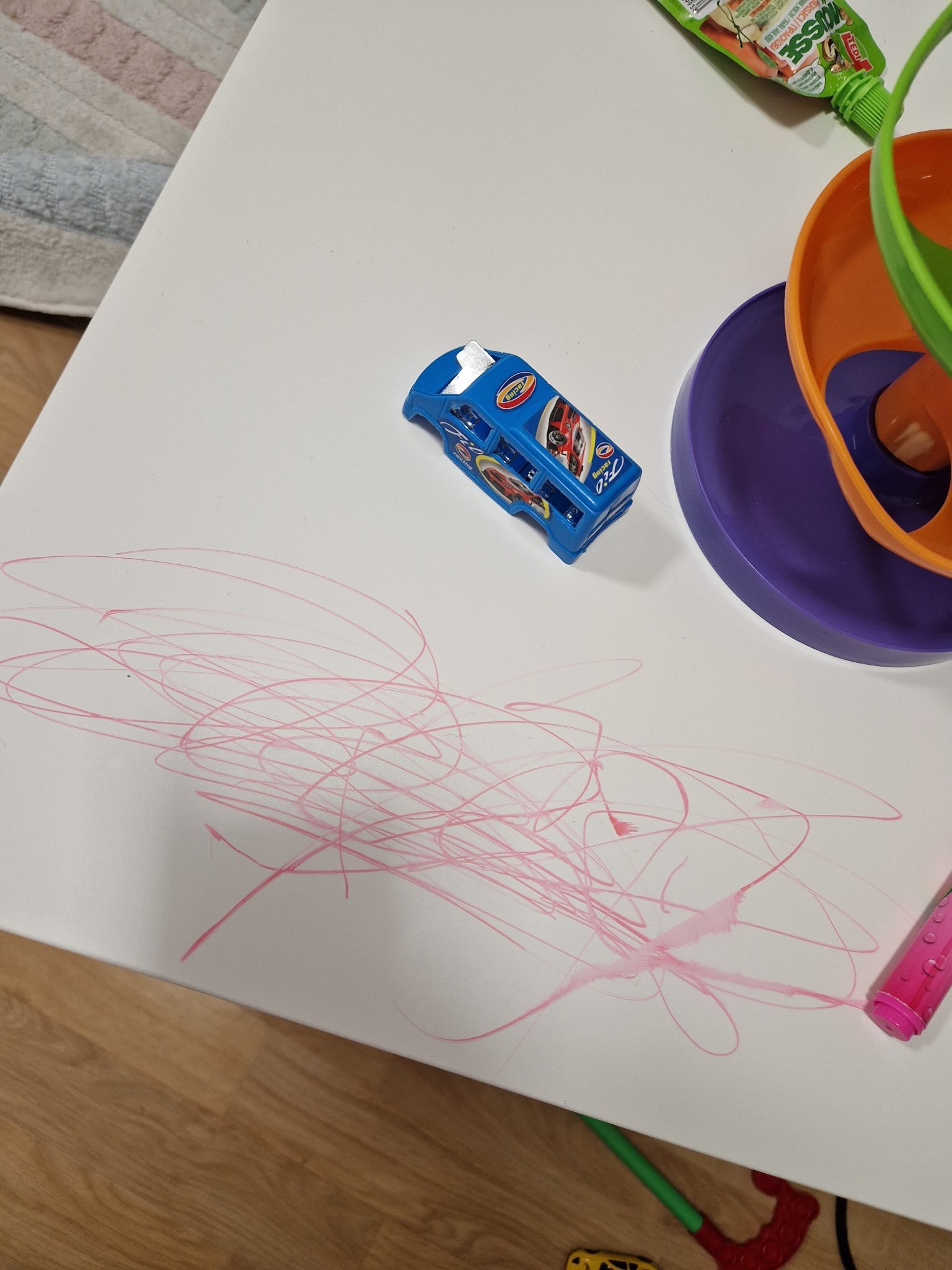 Аз на Ава още не съм ѝ купила фулмастери/моливи/пастели, честно казано и не бързам 😃 по-скоро първо ще взема такава дъска и като видя истински интерес, тогава ще взема цапащи материали 😃