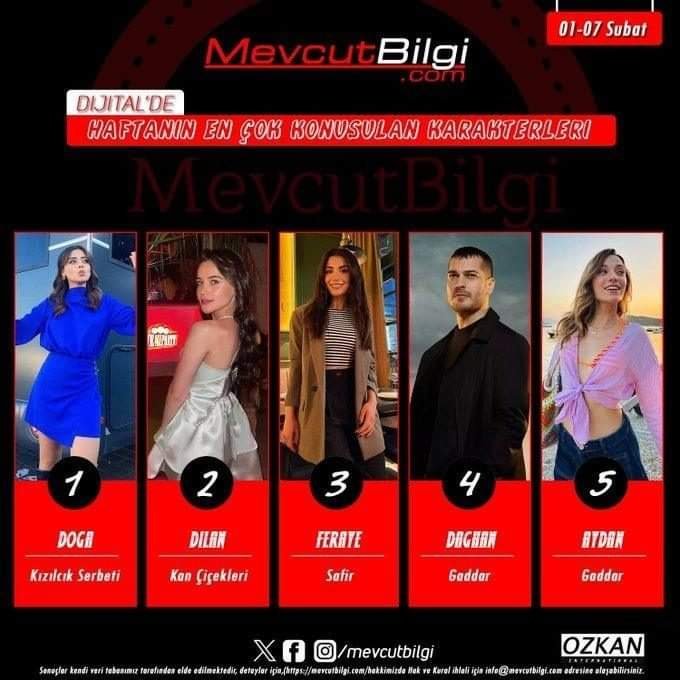 💥Според измерването на Мevkut Bilgi  най-споменаваните  герои за седмицата (1-07 февруари)са :