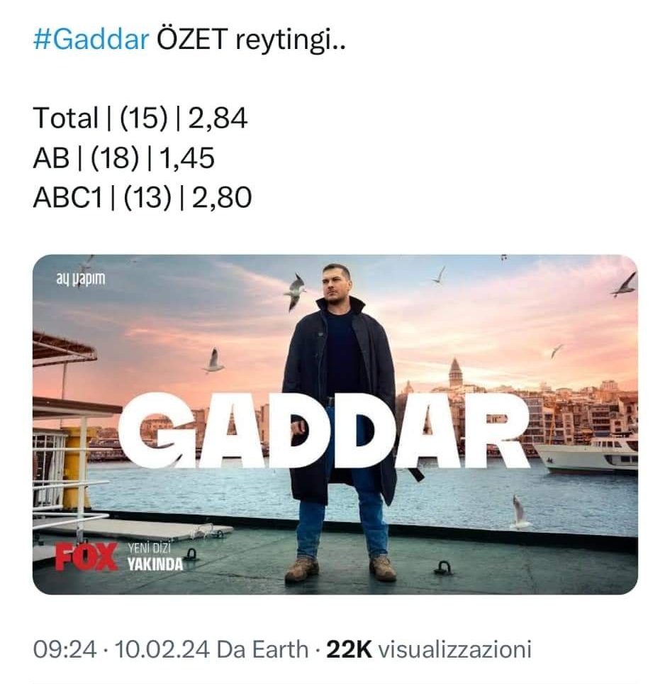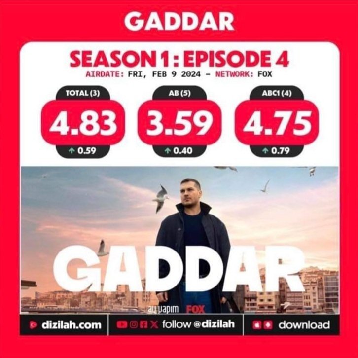 Той се е увеличил много от последния път, знак, че публиката започва да се движи. Поздравления за целия екип на "Gaddar", защото заслугата принадлежи на всички и не на последно място на феномена Чаатай Улусой, който демонстрира за пореден път какво означава да си актьор в истинския смисъл на думата 👑👏👏👏❤️