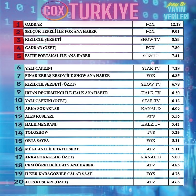 CoxTurkey: Телевизионните рейтинги достигат 22 милиона зрители на 8 цифрови платформи и 2 услуги за сателитно излъчване и модулационни системи.