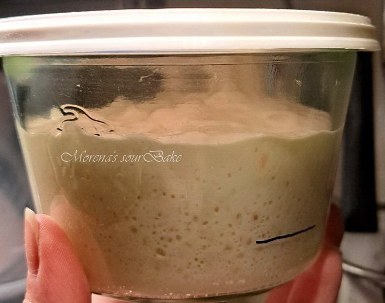 Предвид горещините навън квасът е в пик след около 7-8 часа  - колко още трябва да увелича количеството на брашното и водата, за да направя храненето на 12 часа - в момента е 1:3:3, като слагам 1/3 ръжено и 2/3 бяло. И двете брашна са на Евамел, ръженото е на каменната мелница, бялото е на голямата мелница. Първоначално бялото брашно беше на Екосем, но квасът видимо страдаше и затова набързо го смених.